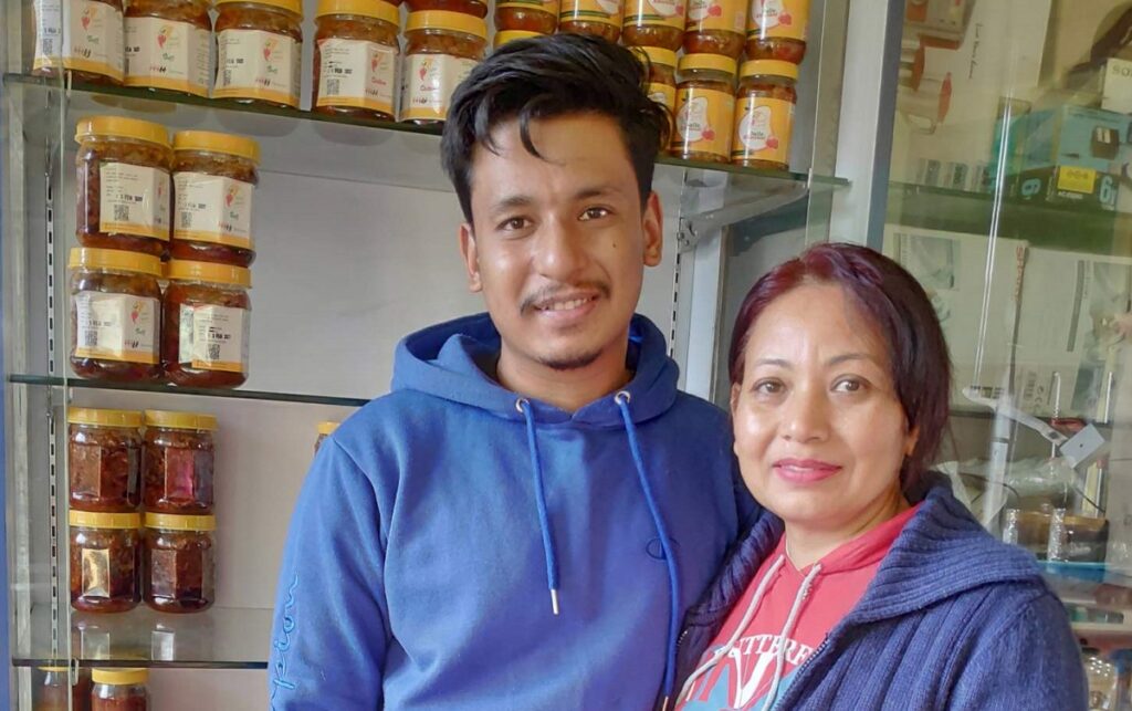 आमा अचार बनाउँछिन्, छोरा आमाले बनाएको अचार बेच्छन्।