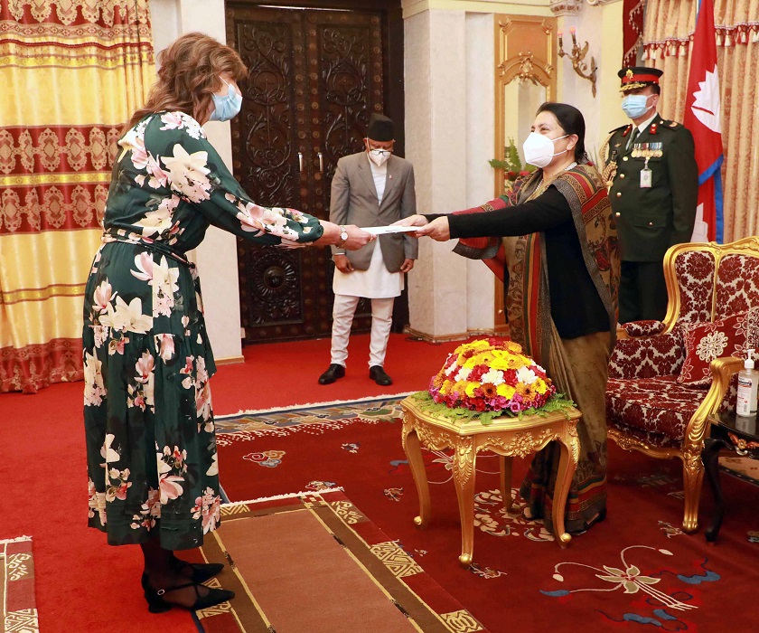 राष्ट्रपति भवन, शीतल निवासमा आज आयोजित विशेष समारोहमा पाकिस्तानी राजदूत सैद हैदर शाह र अष्ट्रेलियाका राजदूत फेलिसिटी जेन भल्कले प्रमाणपत्र पेश गरेका हुन् ।