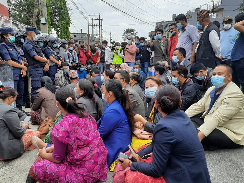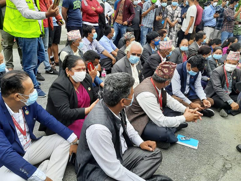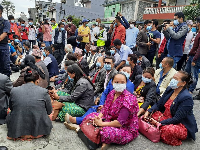 मुख्य मन्त्रीको निवास अगाडि पुग्नेमा नेपाली कांग्रेसका १३ जना, माओवादी केन्द्रका ११ जना, जसपाका २ जना, जनमोर्चाका १ जना र स्वतन्त्र सांसद दीपक मनाङ्गे छन्।