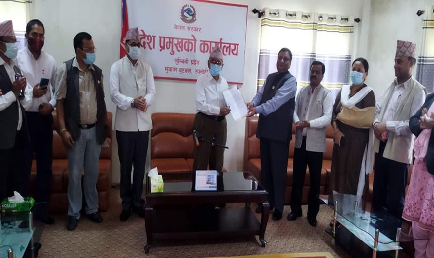 लुम्बिनी प्रदेशको मुख्यमन्त्रीमा दाबी गर्दै चार दलीय गठबन्धनले प्रदेश प्रमुखलाई हस्ताक्षर बुझाएको छ।