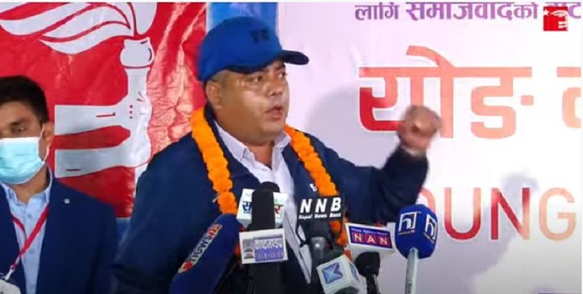 उनले भने, ‘हाम्रो पनि अधिवेशन हुने कि नहुने हुने कि नहुने भनेर तंग्रिरहेको अवस्था छ, म नेपाली काँग्रेसको महासमिति सदस्य पनि हुँ । जुन माध्यमबाट तपाईँहरुले यो भेला सम्पन्न गर्न गइरहनुभएको छ । हामीलाई पनि तपाईँहरुले एउटा पाठ सिकाइरहनुभएको छ । आज हाम्रो सभापति र नेताहरुलाई कसरी व्यवस्थित गर्ने भनेर शिक्षा दिनुभएको छ, म धन्यवाद दिन चाहान्छु । ’