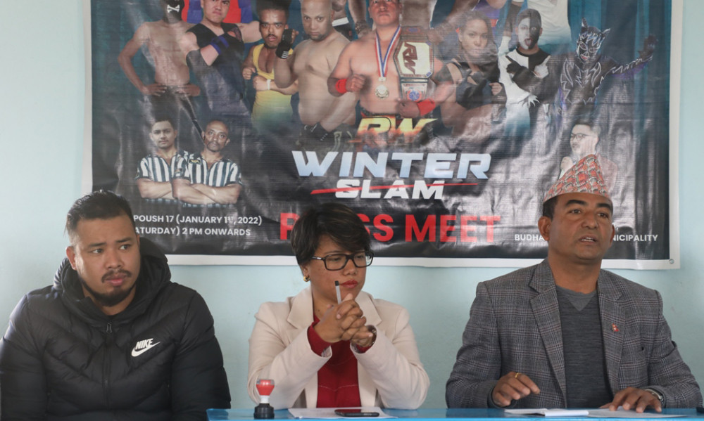 काठमाडौँ — नेपाल रिङ रेस्लिङ संघको आयोजनामा प्रथम आरडब्लू विन्टर स्लाम राष्ट्रिय रेस्लिङ प्रतियोगिता पुस १७ मा हुने भएको छ । बूढानीलकण्ठस्थित चुनिखेल मैदानमा हुने प्रतियोगितामा ५ विधामा प्रतिस्पर्धा हुनेछ ।