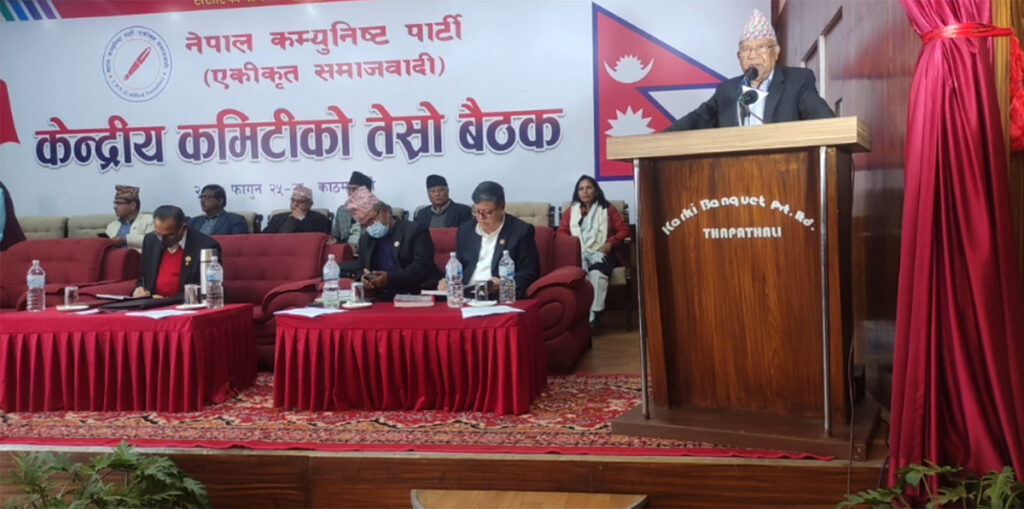 बुधबारदेखि काठमाडौंमा सुरू भएको पार्टी केन्द्रीय कमिटीको बैठकमा बोल्दै अध्यक्ष नेपालले स्थानीय तह चुनावको तयारीको सन्दर्भमा सत्तारूढ दलहरूबीच मिलेर जाने सहमति भएको बताएका हुन्।