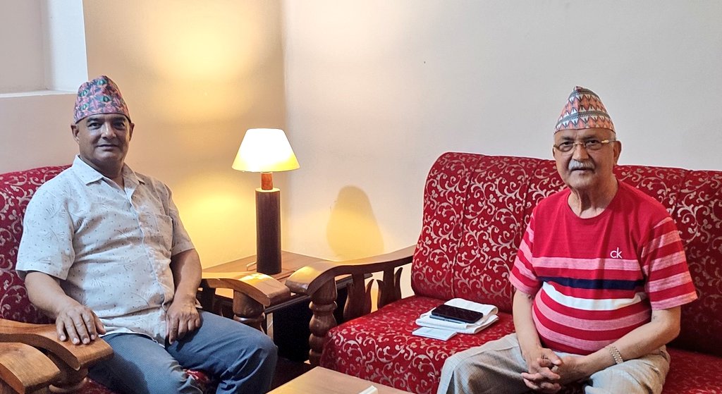नेपालगञ्जमा बिहीबार बेलुकी उनीहरूबीच समसामयिक राजनीतिक घटनाक्रमबारे कुराकानी भएको हो।
