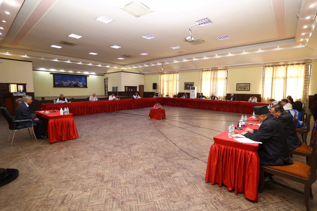 ‘सम्माननीय प्रधानमन्त्रीज्यूको अध्यक्षतामा पाँच दलीय उच्चस्तरीय संयन्त्रको बैठक सम्पन्न भएको छ। बैठकमा स्थानीय तह निर्वाचनलाई कसरी सफलतापूर्वक सम्पन्न गर्ने र स्थानीय निर्वाचनमा पाँच दलको गठबन्धनद्धारा समर्थित उम्मेदवारहरुलाई कसरी विजयी गराउने यिनै बारेमा बृहत रुपमा छलफल भएको छ’, उनले भने, ‘फेरि यो बैठक बोलि ४ बजेका लागि डाकिएको छ। त्यो बैठकपछि हामी मेकानिज्मको बारेमा कस्तो किसिमको मेकानिज्म अपनाउने त्यसको बारेमा म तपाईहरुलाई अवगत गराउनेछु। अहिले चाँही पाँच दलले एउटा वक्तव्य जारी गरेको छ।’