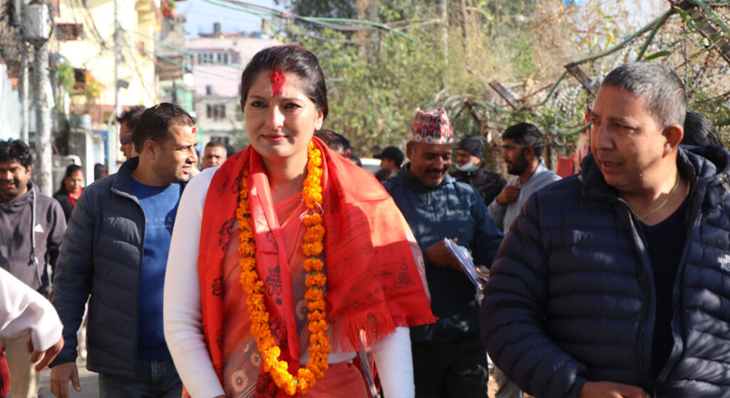 काठमाडौं । काठमाडौं क्षेत्र नम्बर २ मा राष्ट्रिय प्रजातन्त्र पार्टी (राप्रपा)की प्रतिनिधिसभा सदस्य उमेदवार कुन्ती पोख्रेलले धर्म, संस्कार, संस्कृतिको रक्षाका लागि आफूलाई मतदान गर्न आग्रह गरेकी छन् ।