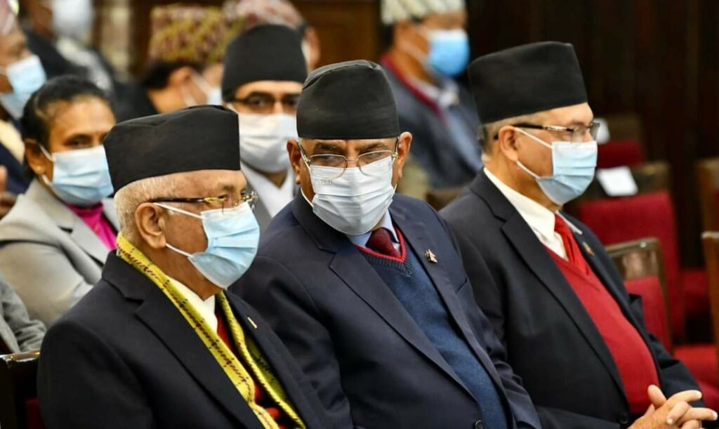 शीतल निवासमा आयोजित प्रतिनिधिसभाका ज्येष्ठ सदस्यको शपथ ग्रहण समारोहमा नेतात्रय पूर्वप्रधानमन्त्रीको हैसियतमा उपस्थित भएका थिए ।