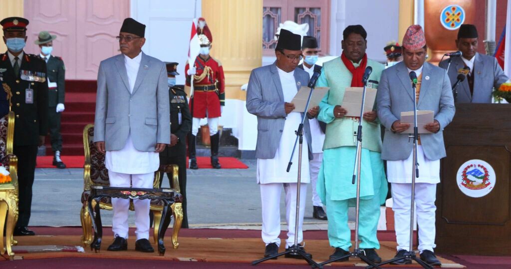 काठमाडौं । प्रधानमन्त्री पुष्पकमल दाहाल प्रचण्डको मन्त्रिपरिषद्मा तीन मन्त्रीले बिनाविभागीय मन्त्रीको शपथ लिएका छन् ।