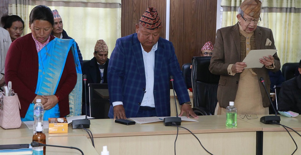 सिंहदबारस्थित संघीय संसद सचिवालयको कानुन समितिको हलमा उनीहरूलाई प्रतिनिधि सभाका ज्येष्ठ सदस्य पशुपति शमशेर जबराले शपथ गराएका हुन्।