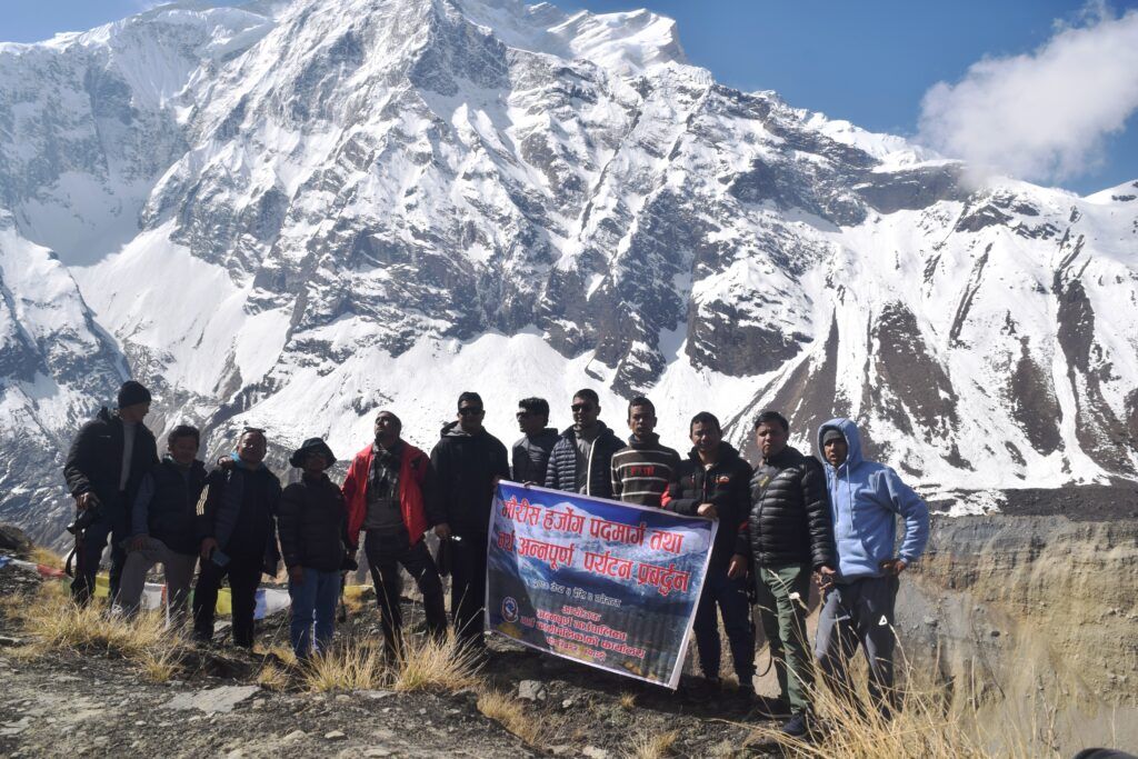गाउँपालिका अध्यक्ष पुन, उपाध्यक्ष दिवाकुमारी तिलिजा पुन र प्रमुख प्रशासकीय अधिकृत अमृत सुवेदीको टोलीले आधार गत महिना शिविर क्षेत्रको स्थलगत अवलोकन गरेपछि सरोकारवालालाई समेटेर प्रवद्र्धनात्मक कार्यक्रम तय गरिएको थियो । गाउँपालिकाले आयोजना गरेको नर्थ अन्नपूर्ण प्रवद्र्धन टोलीमा सहभागीमध्ये १५ जनाको टोली गाउँपालिकाको केन्द्र पोखरे बगरदेखि एकै दिनमा आधार शिविर पुग्न सफल भएका थिए । टोलीले आधार शिविर क्षेत्रको सम्भावना, समस्या र चुनौतीका विषयमा समुद्री सतहदेखि चार हजार तीन सय पाँच मिटरको उचाइँमा रहेको अन्नपूर्ण प्रथमको आधार शिविरमा अन्तक्र्रियासमेत गरेका थिए । सम्भावनाले भरिपूर्ण नर्थ अन्नपूर्ण आधार शिविरलाई प्रचार प्रसारका माध्ययममार्फत आन्तरिक तथा बाह्य पर्यटकको आगमन बढाउन प्रवद्र्धन अभियानलाई व्यापक बनाउने टोलीले निष्कर्ष निकालेको टोलीमा सहभागी गाउँपालिकाका प्रमुख प्रशासकीय अधिकृत अमृत सुवेदीले बताउनुभयो ।