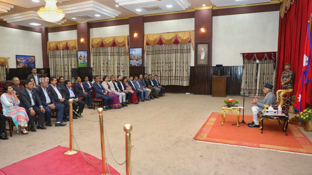 ‘सरकार र निजी क्षेत्रबीच पारस्परिक सहअस्तित्व र समभावको दरिलो साझेदारी आवश्यक छ भन्ने मलाई लाग्छ,’ भेटमा राष्ट्रपति पौडेलले भने, ‘नेपालको अर्थव्यवस्थामा नीजि क्षेत्रको ८० प्रतिशतभन्दा बढी हिस्सा छ, त्यसकारण पनि मुलुकको आर्थिक समुन्नतिमा निजी क्षेत्रको भूमिका अर्थपूर्ण छ ।’