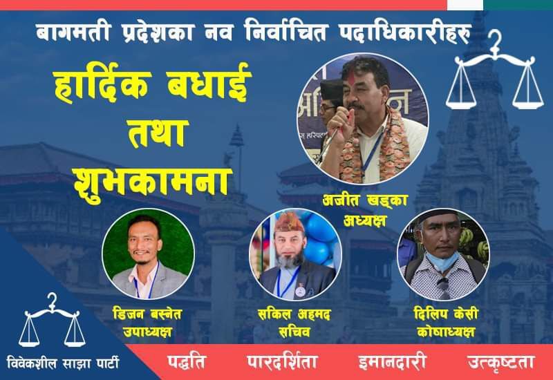 काठमाडौं । विवेकशील साझा पार्टीको वाग्मती प्रदेश अध्यक्षमा अजित खड्का चयन भएका छन् । खड्काको नेतृत्वमा १३ सदस्यीय प्रदेश समिति चयन गरेको हो ।