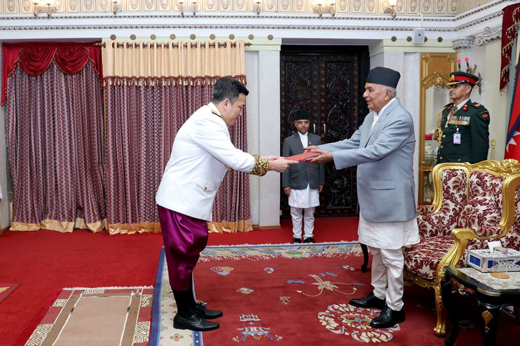 काठमाडौं । राष्ट्रपति रामचन्द्र पौडेलसमक्ष नेपालका लागि विभिन्न तीन देशका नवनियुक्त राजदूतहरूले ओहोदाको प्रमाणपत्र पेस गरेका छन् । सोमबार कतार, पेरु र कम्बोडियाका राजदूतले ओहोदाको प्रमाणपत्र पेस गरेका हुन् । कतारका आवासीय र पेरु र कम्बोडियाका गैरआवासीय राजदूत हुन् ।