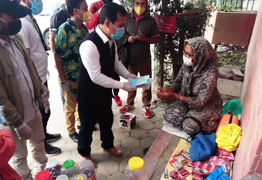 नेपाली काँग्रेसका पार्टी प्रवक्ता विश्व प्रकाश शर्माको हातबाट नयाँ बानेश्वरमा निशुल्क मास्क वितरण अभियानको थालनी गरिएको थियो ।