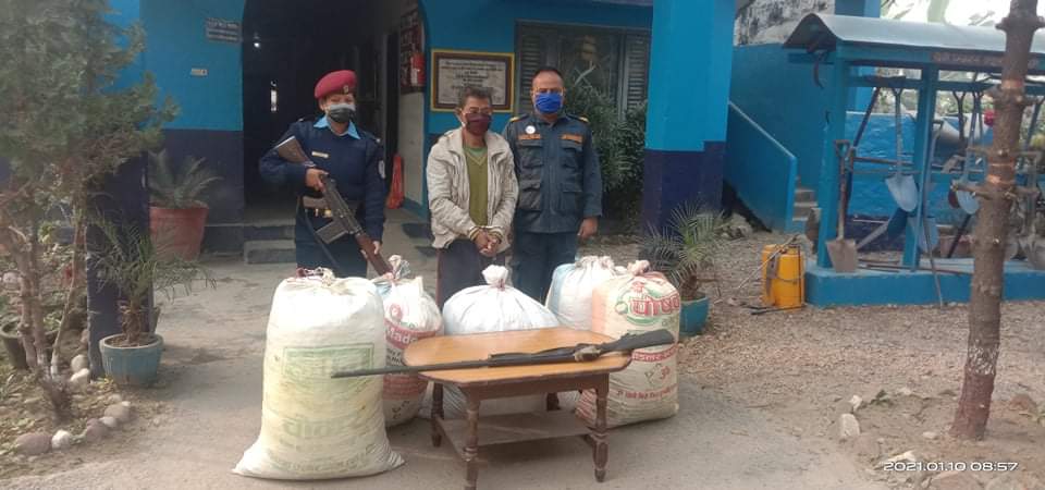 प्रहरीले घटनास्थलबाट  १०२ किलो अवैध लागू औषध गाँजा र तामाङको  साथबाट लोड भएको १ थान भरुवा बन्दुक बरामद गरेको छ ।