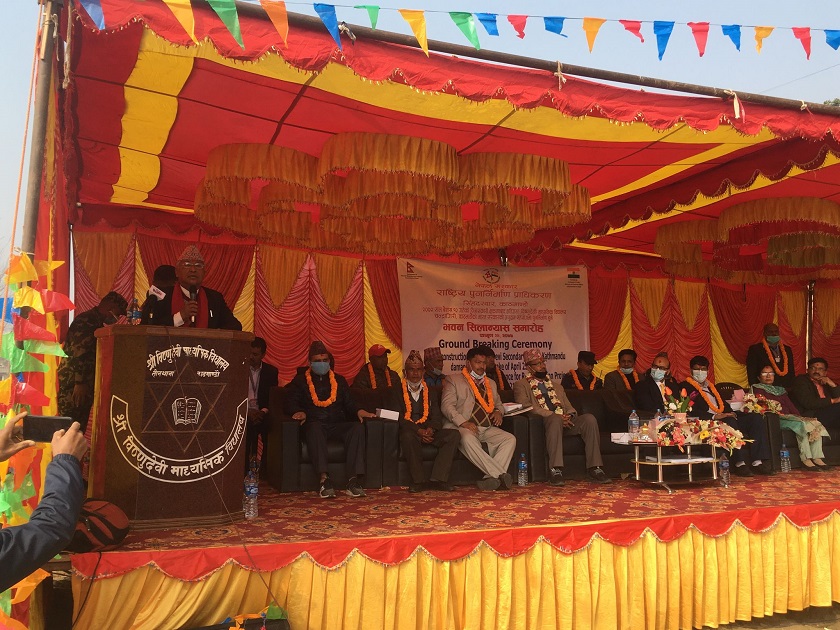 सार्वजनिक  विद्यालयको गरिमा बढाउन तथा पठनपाठनको वातावरण बनाउन गुणस्तरीय शिक्षाको आवश्यकतामा जोड दिँदै उनले शैक्षिक क्षेत्रलाई राजनीतिबाट मुक्त गर्न आफू दृढ रहेको बताए । भारत सरकारको अनुदान रु ६ करोड ४९ लाखको लागतमा पुनःनिर्माण हुन लागेको उक्त विद्यालय भवन नेपाल सरकारले निर्धारण गरेको भूकम्पमा नभत्किने मापदण्ड अनुरुप बनाइने छ ।