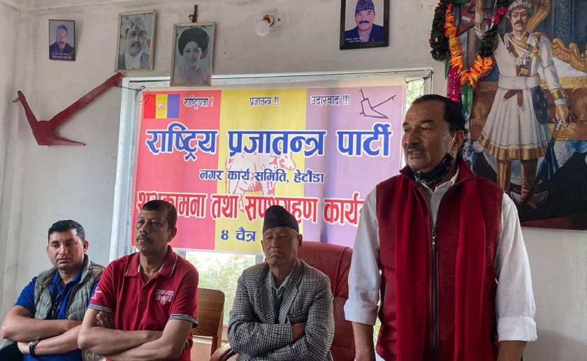 हेटौंडा । राष्ट्रिय प्रजातन्त्र पार्टीका अध्यक्ष कमल थापाले ०६२/६३ को परिवर्तन पछि मुलुकमा विदेशी हस्तक्षेप बढेर गएको बताएका छन् । राप्रपा हेटौंडा नगर समितिका नवनिर्वाचित कार्य समितिको सपथ ग्रहण समारोहलाई सम्बोधन गर्दै थापाले सो कुरा बताएका हुन् । अध्यक्ष थापाले विदेशीको इसारामा लादिएको एजेन्डाले मुलुकको स्वाधीनता कमजोर हुने विचार ब्यक्त गरे।