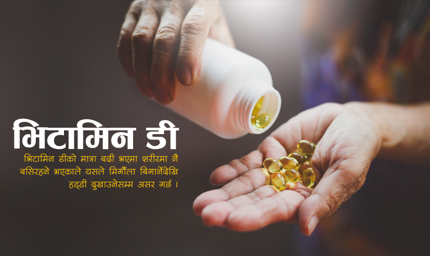 तर, चिकित्सकको सल्लाहबिना जथाभावी भिटामिन डीको प्रयोग गर्दा यसले हड्डी दुखाउनेदेखि मिर्गौला ड्यामेज गर्नेसम्मको असर गर्ने चिकित्सकले चेतावनी दिएका छन् ।