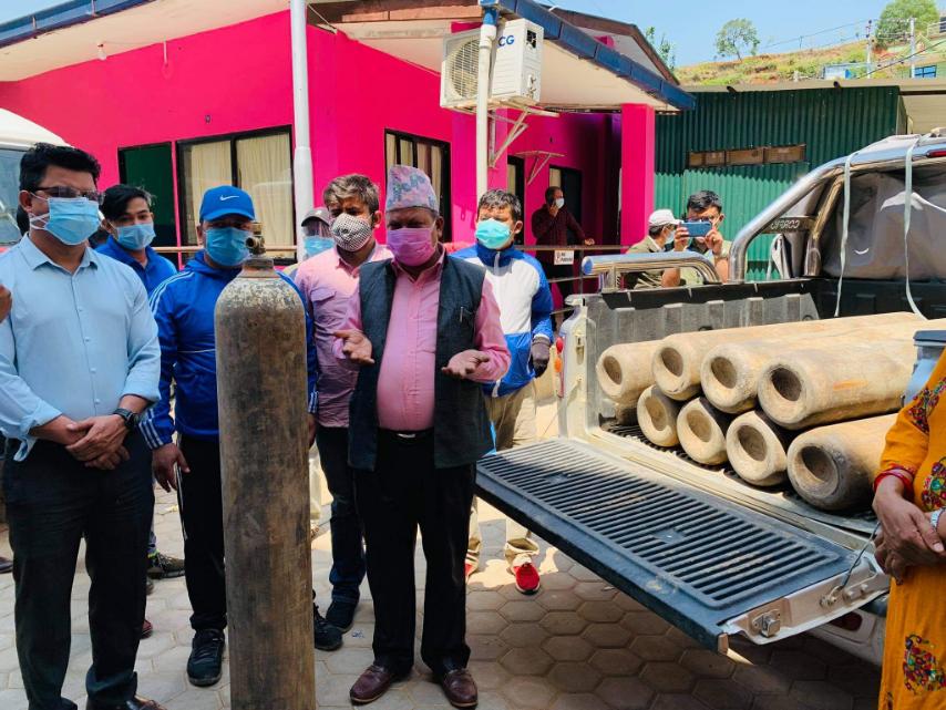 जिल्ला अस्पताललाई आफ्नै खर्चमा १० थान अक्सिजन सिलिण्डर त्रिशूली अस्पतालका अध्यक्ष अर्जुन न्यौपाने र मेडिकल सुपरिटेन्डेन्ट दीपेन्द्र पाण्डेलाई आइतबार बिहान सांसद खतिवडाले सहयोग हस्तान्तरण गरेका हुन्।