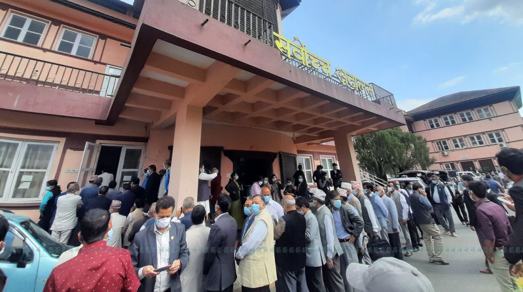 रिट निवेदनमा सनाखत गर्न १४६ सांसद अहिले सर्वोच्च अदालत परिसरमा लाइन लागेका छन्।