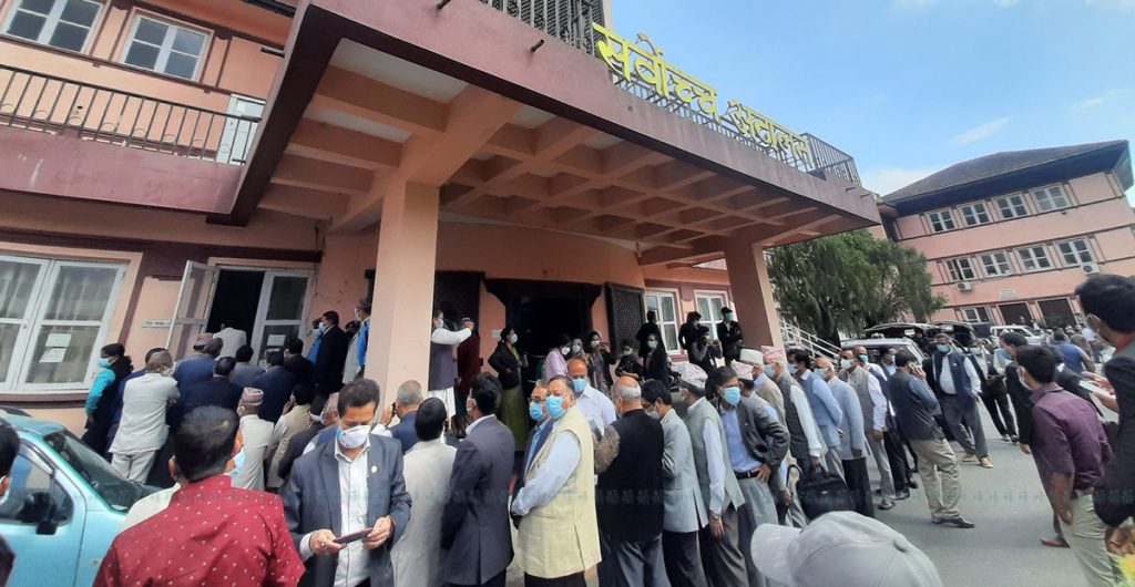 नेपाली इतिहासमै पहिलो पटक बहुमत सांसद सरकार गठनका लागि सर्वोच्च अदालतको रिट दर्ता शाखा अघि लामबद्ध भएको यो दृष्य विरलै देख्न पाइन्छ।