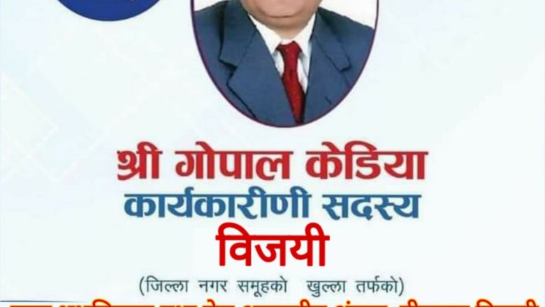 आज सम्पन्न भएको नेपाल उद्योग वाणिज्य महासंघको निर्वाचनमा जिल्ला नगर तर्फबाट कार्यसमिति सदस्यमा गोपाल केडीया निर्वाचित हुनुभएको छ। वीरगञ्जका व्यवसायी तथा वीरगञ्ज उद्योग वाणिज्य सङ्घका अध्यक्ष गोपाल केडीया निर्वाचित हुनुभएको छ।